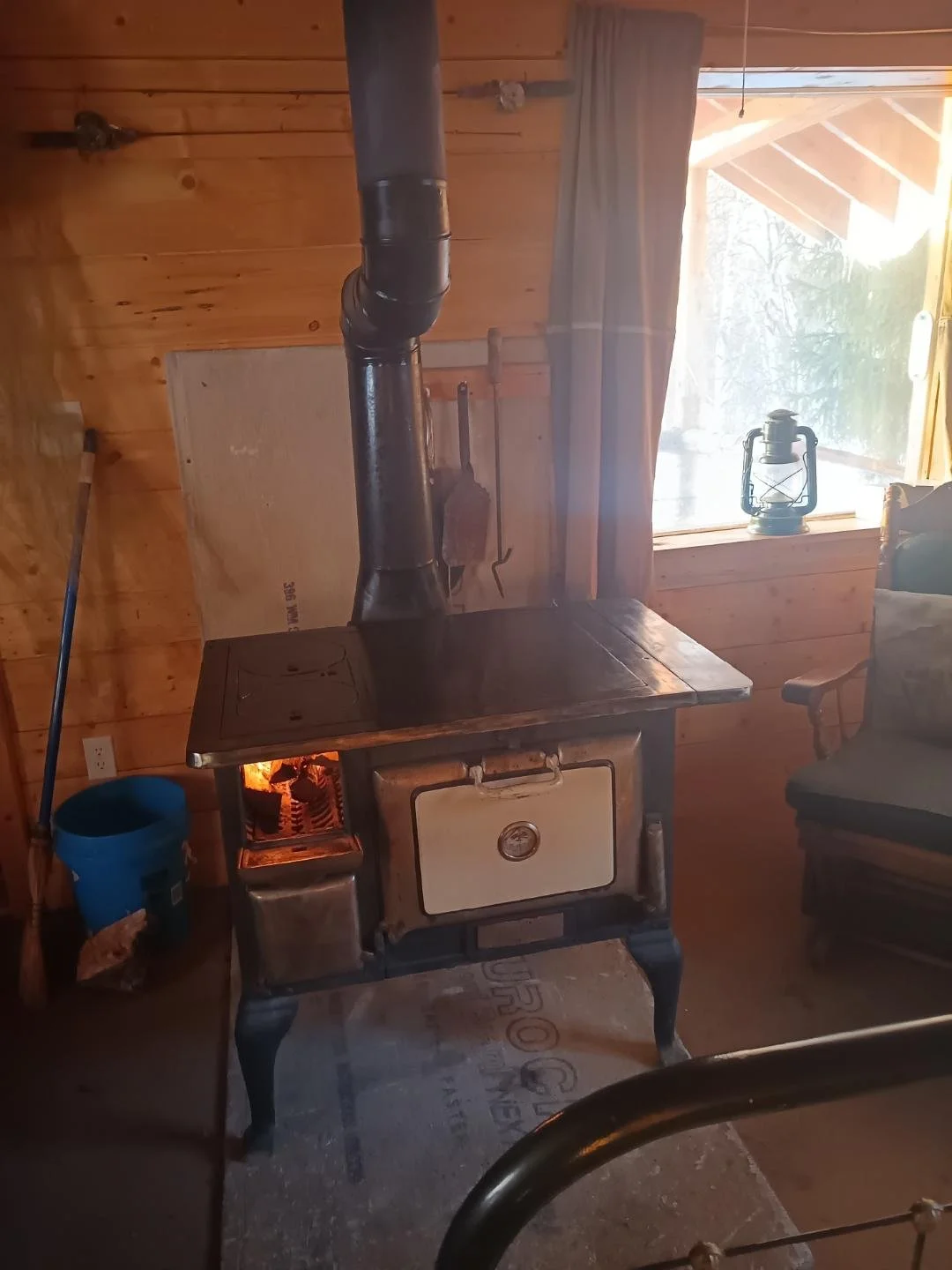 While fixing up their cabin, the neighbors decided to get rid of some stuff. We were blessed with a new, used cookstove for our spare cabin…