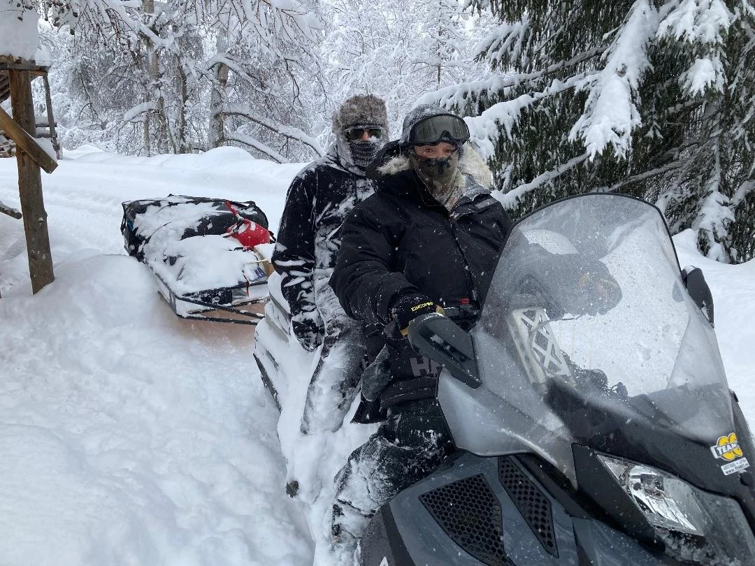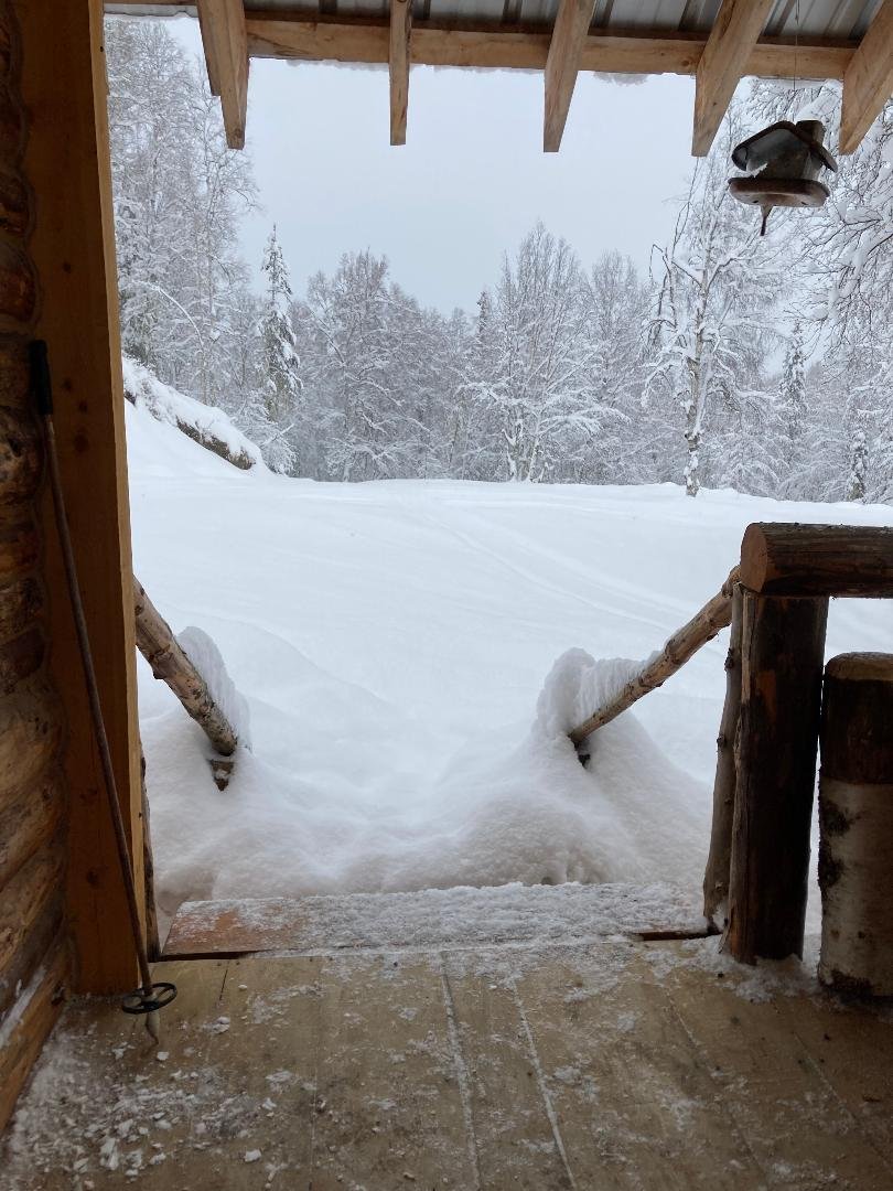 In the spirit of talking about snow, the first winter we lived at this place (2022), Kevin’s dad, Everett, came up to visit. It happened to be during a blizzard that was so bad, the airport closed down right after his plane landed. Kevin headed to Anchorage to pick him up in our 4-wheel drive pickup and barely made it there and back. On the way to Talkeetna, the heater went out on the pickup so they could barely see through the windshield, not to mention the white-out conditions! Everett had never been on a snow machine before and Kevin was still pretty green on it but they headed out of the parking lot toward home, pushing snow all the way. In the meantime, I waited for them to show up…